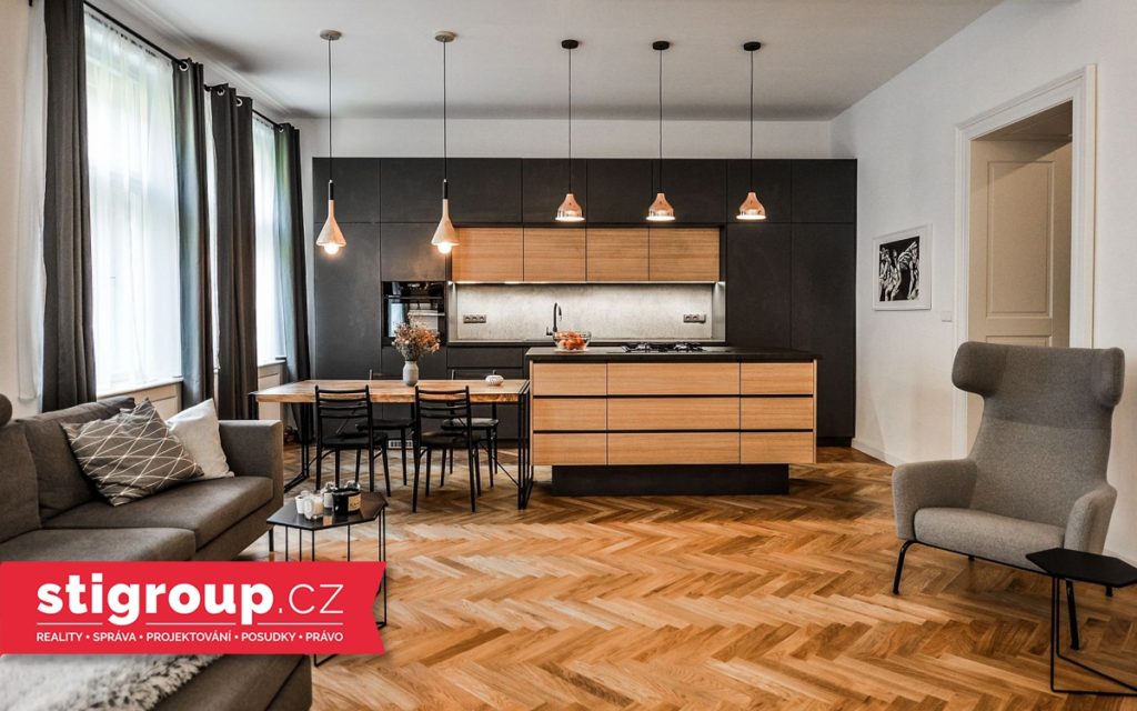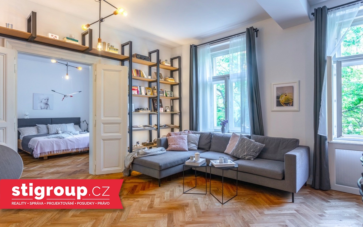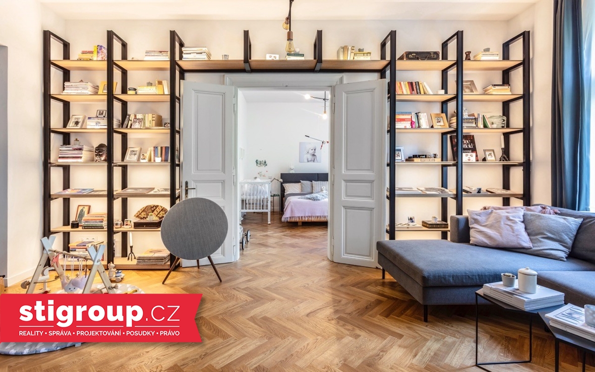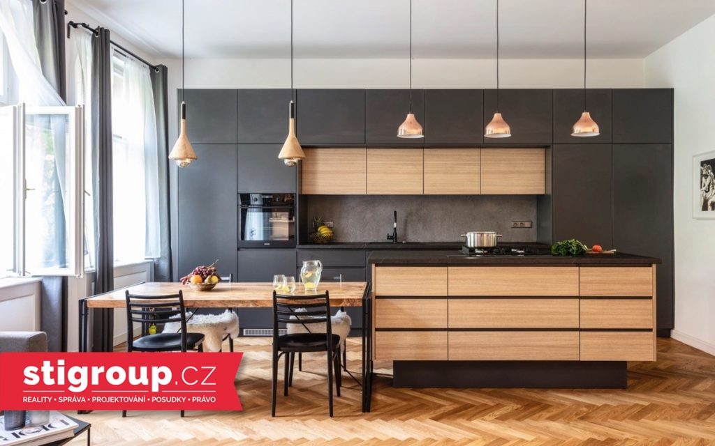 This completely renovated apartment, equipped with high quality materials and designer furniture, is located on the 2nd floor of a well maintained classic residential building with an elevator in a popular residential area of Vinohrady. It was included in the selection of the top 10 refurbished apartments of 2017 in the “Living” section of the online iDNES journal.