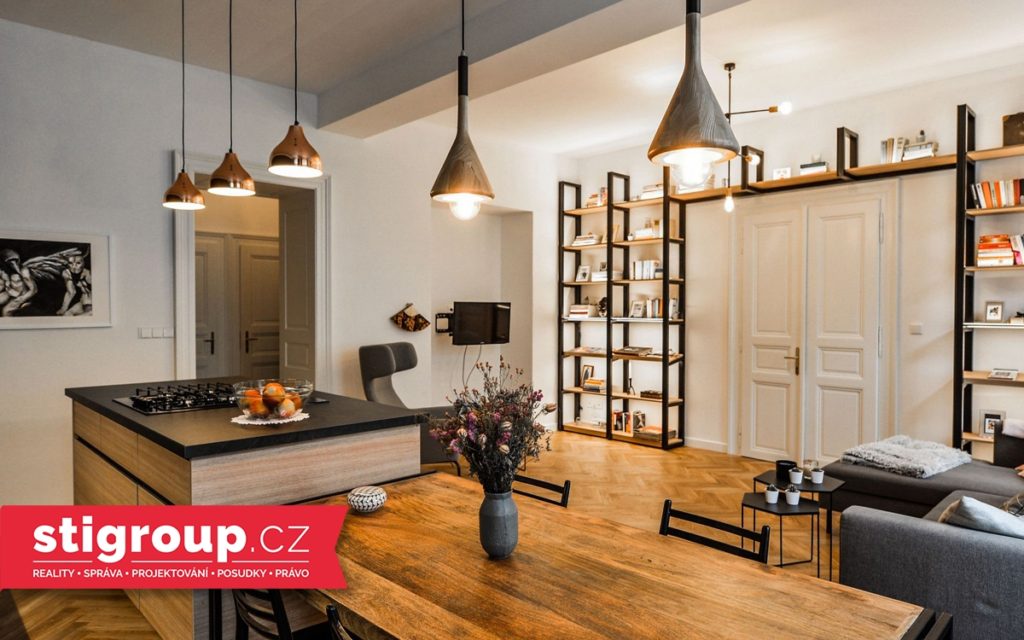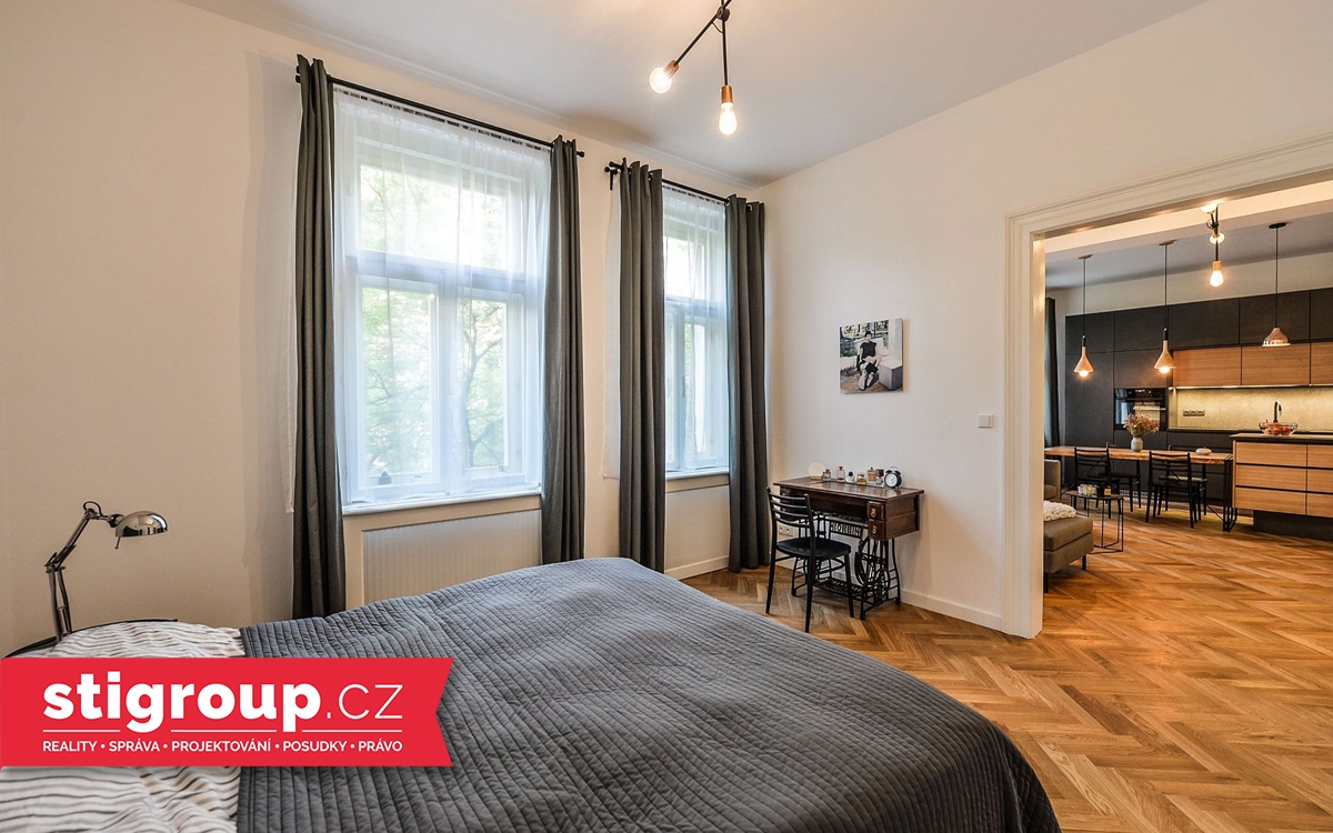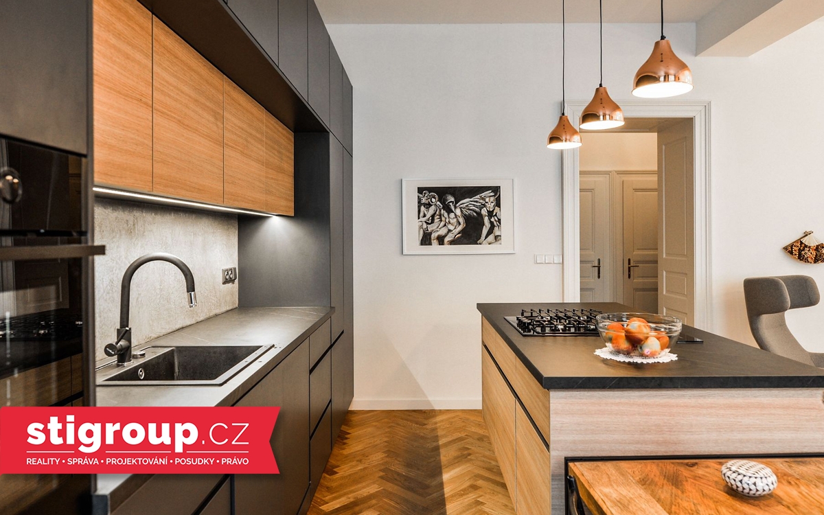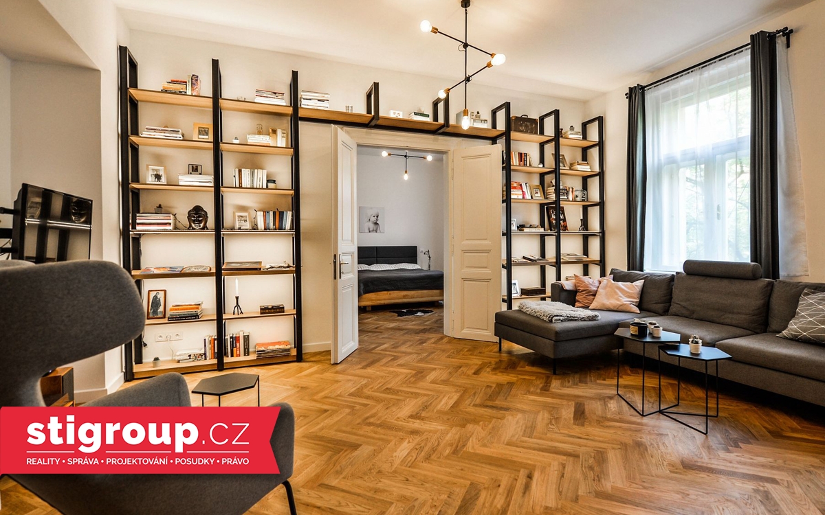 This completely renovated apartment, equipped with high quality materials and designer furniture, is located on the 2nd floor of a well maintained classic residential building with an elevator in a popular residential area of Vinohrady. It was included in the selection of the top 10 refurbished apartments of 2017 in the “Living” section of the online iDNES journal.